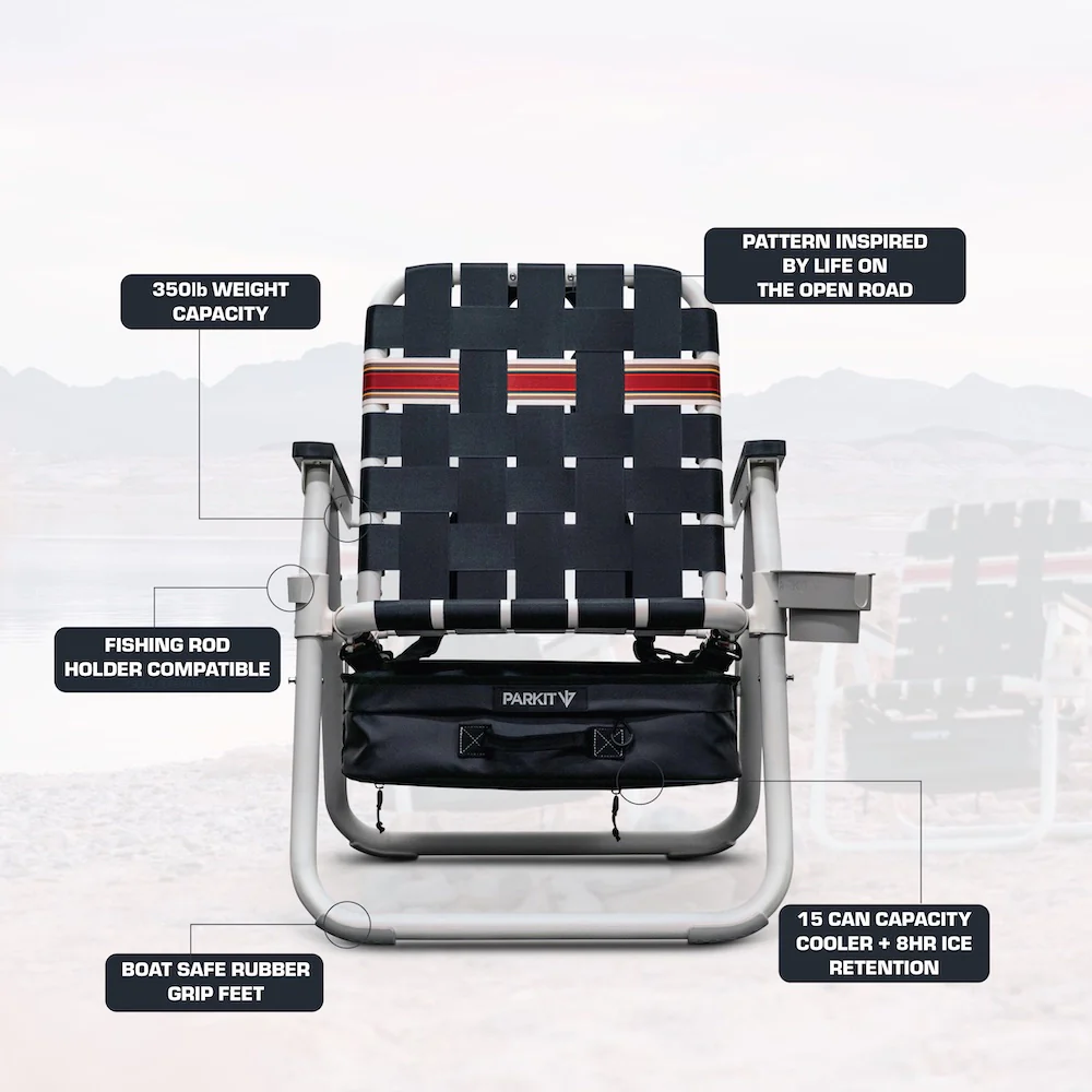 Framed in PARKIT’s signature Voyager design and constructed with stainless steel and aerospace-grade aluminum hardware, Troubadour delivers the 3-in-1 performance you know and love. An integrated cooler keeps drinks cold, ergonomic overlander carry straps make transport effortless, and the durable woven seat is built to handle years of campsites, trailheads, and roadside stops.